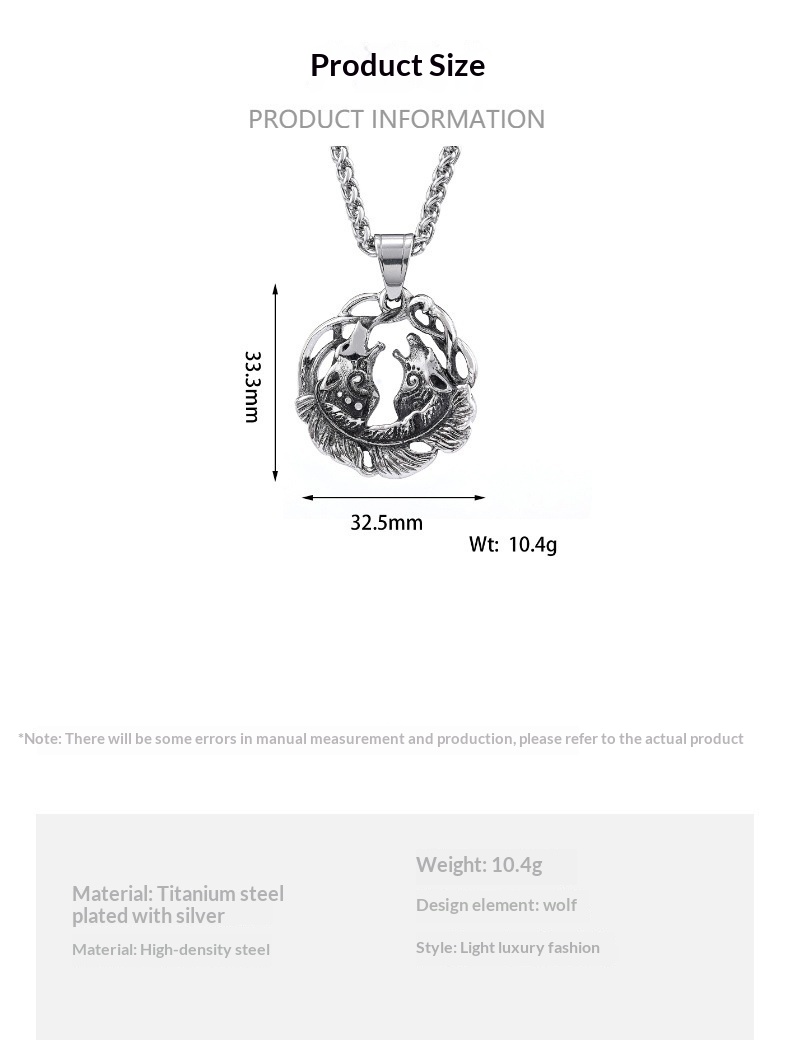 Product information: Processing Technology: Polished Color: Steel Color Material: Stainless Steel Design: Animal/Zodiac Trendy Element: Wolf Style: Vintage